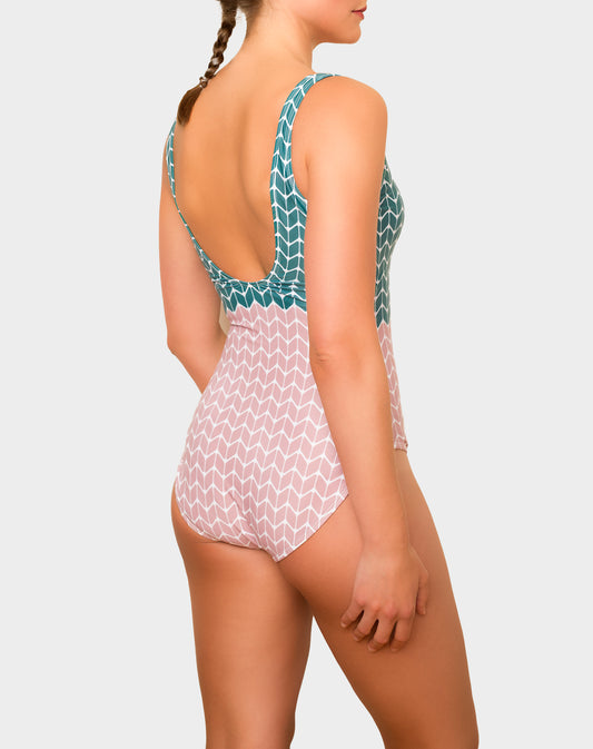 Elbaite Swimsuit - Pastel Pink / Dark Green